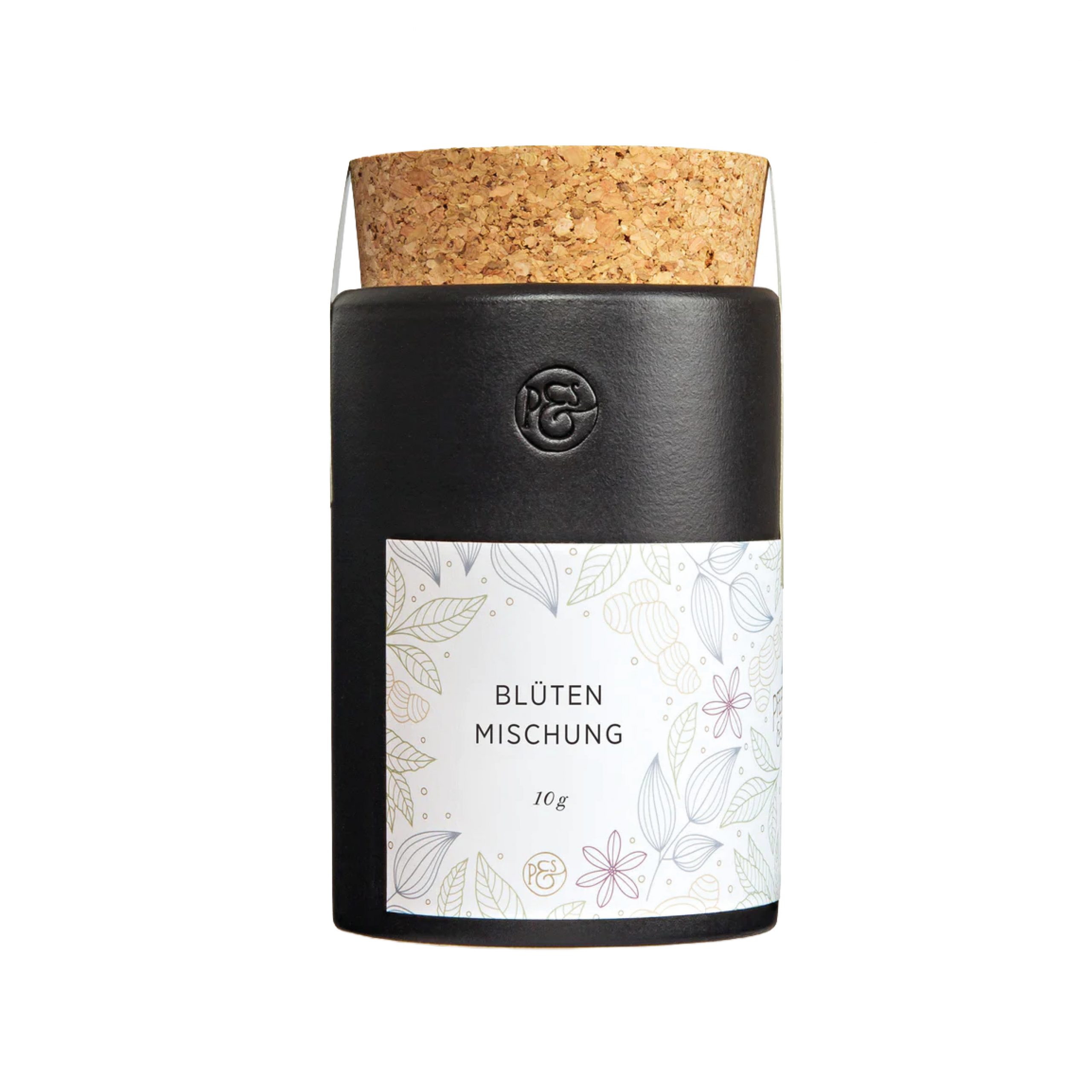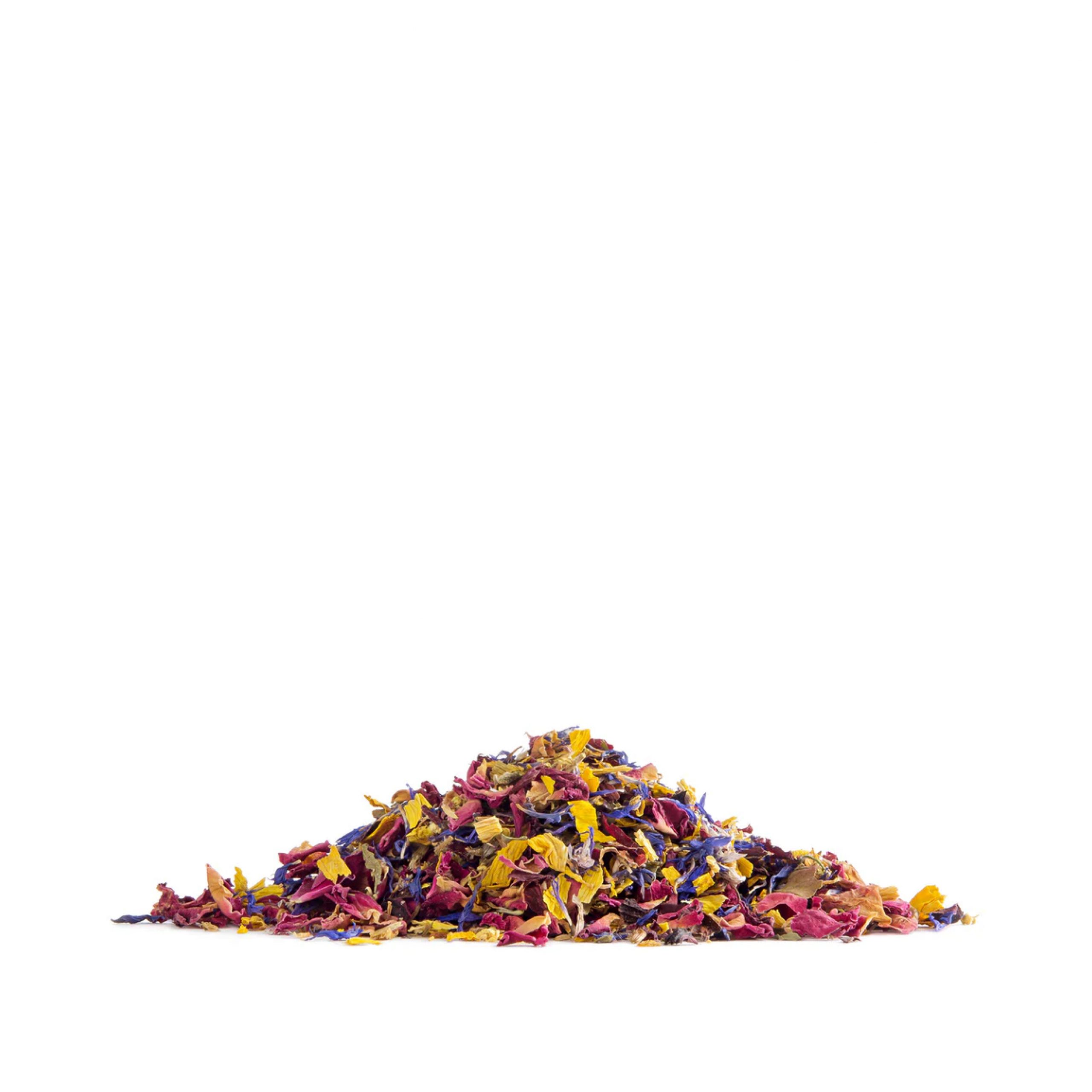 | Zutaten | Rosenblütenblätter, Sonnenblumenblütenblätter, Klatschmohnblüten, Basilikum, Hibiskusblüte, Holunderblüten, Kornblumenblütenblätter |