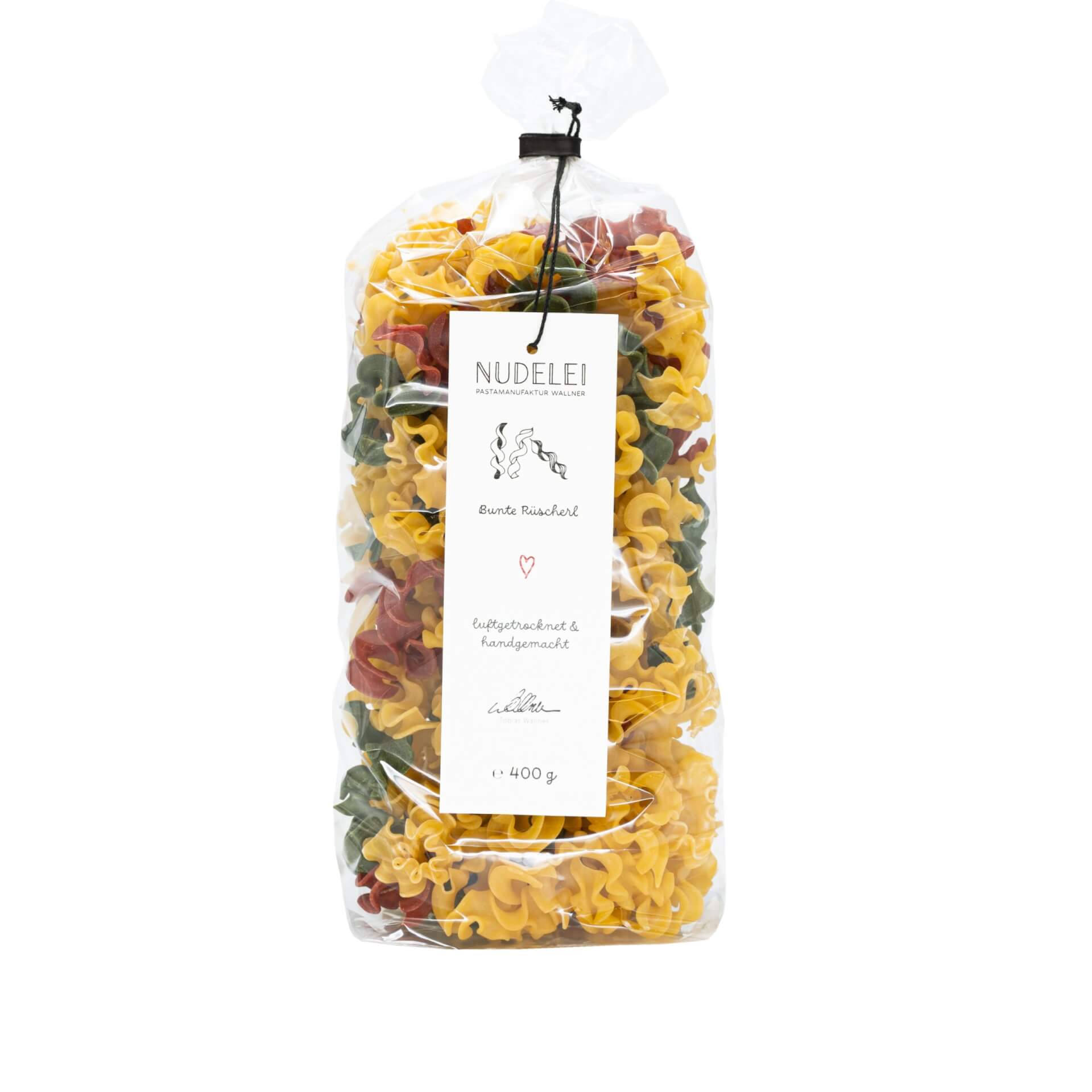 Handwerklich hergestellte Nudeln aus Hartweizengrieß und Freilandeiern vom Wanderhuhn. Verfeinert mit Tomate, Rote Beete und Spinat. Zudem dürfen sie viel länger rasten als industrielle Ware und bewahren so ihren einzigartigen Geschmack.