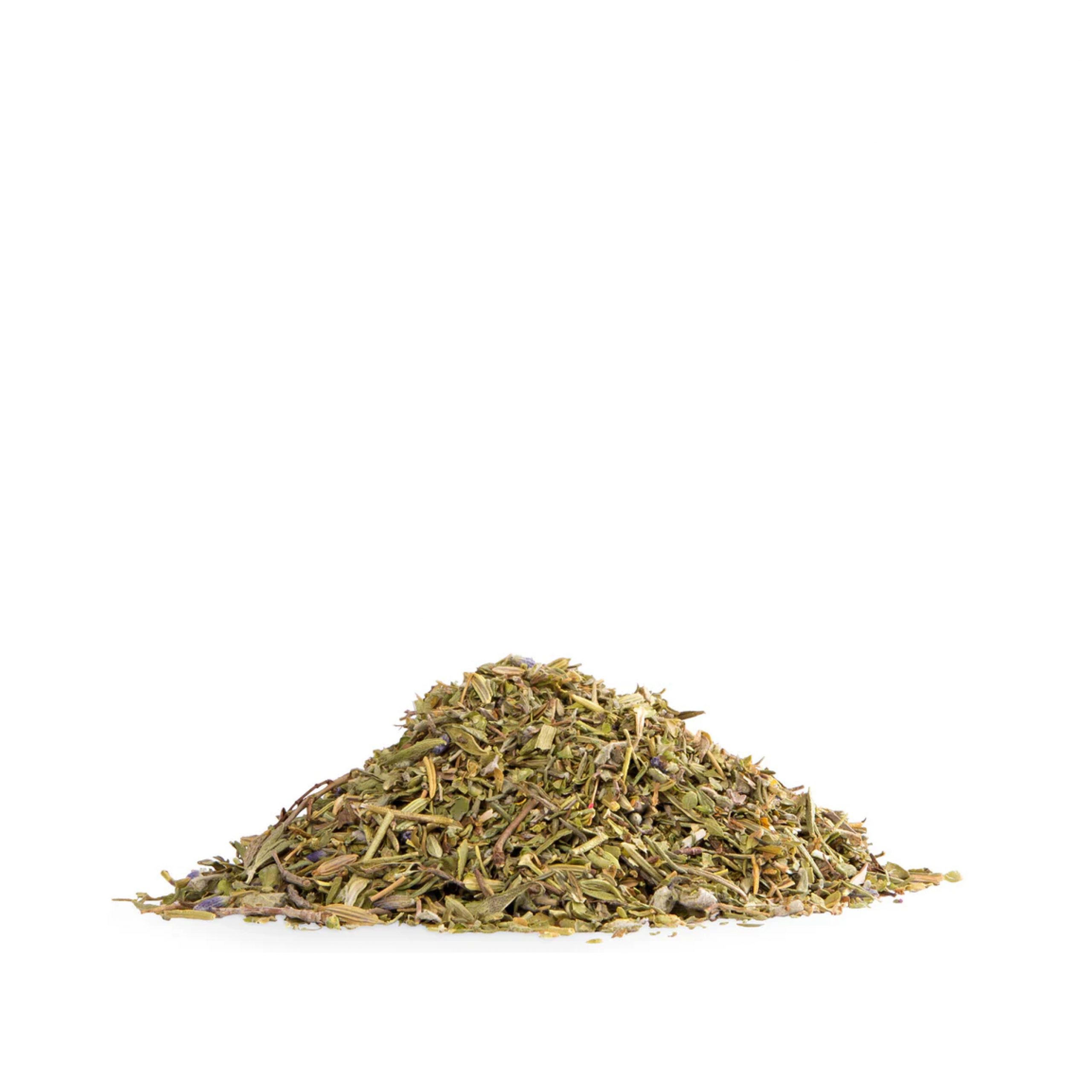 Das Aromenspiel gleicht einer mediterranen Kräuterexplosion. Neben Rosmarin, Thymian und Oregano gesellen sich unter anderem Salbei, Fenchelsaat und unser südfranzösische Lavendel, der die Region rund um Marseille alljährlich in ein lilafarbenes Blütenmeer verwandelt. Die ausgewogene Kombination von herben und frischen Noten macht unsere Mischung so einzigartig.