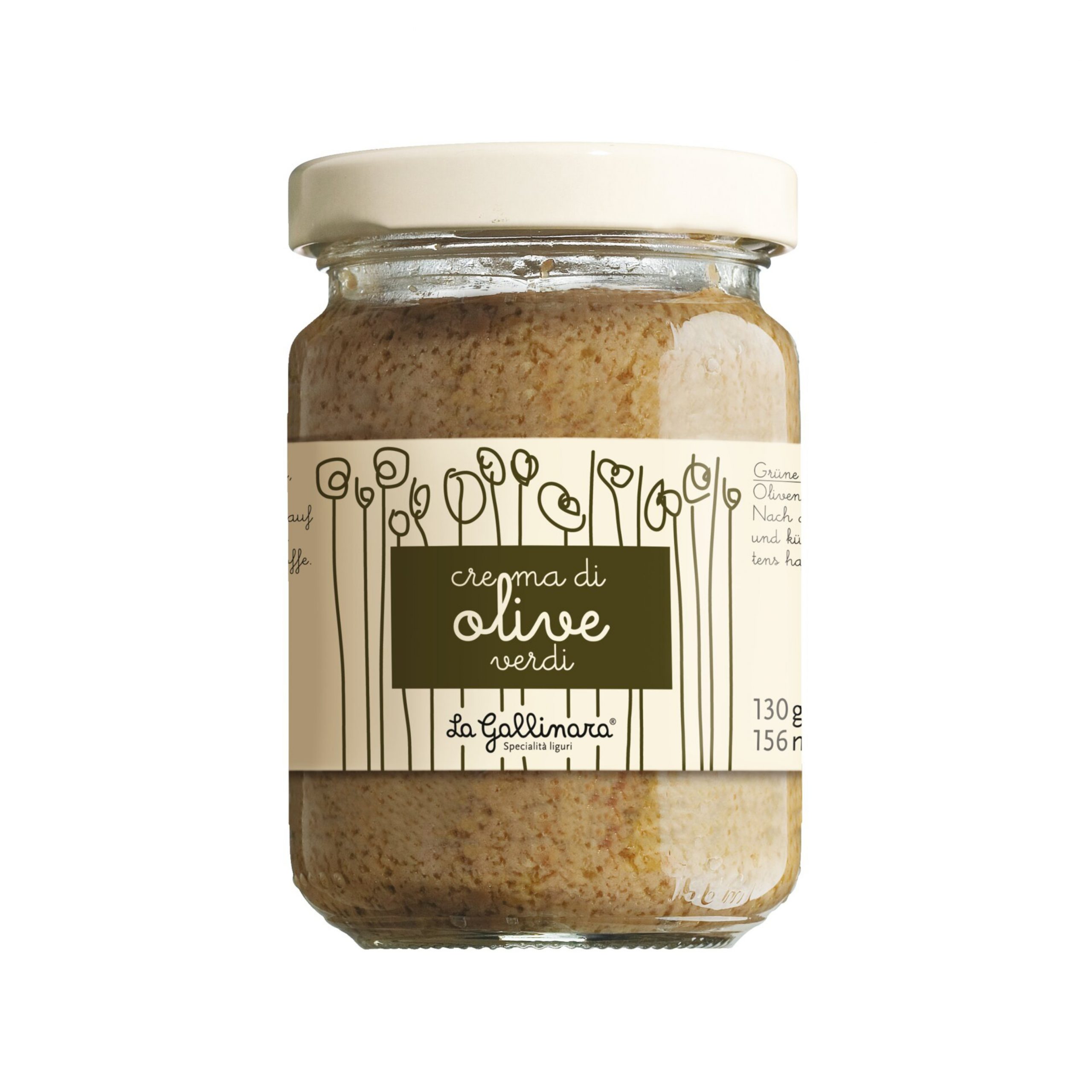 Eine Creme aus milden grünen Oliven und nativem Olivenöl extra. Sie eignet sich als Grundlage für Nudelsaucen, schmeckt gut auf Weißbrot oder als Bruschetta-Aufstrich zum Tomatensalat. Auch als Würze in Brotteig oder auf Focaccia. Perfekt zum Marinieren vom Lammfleisch.